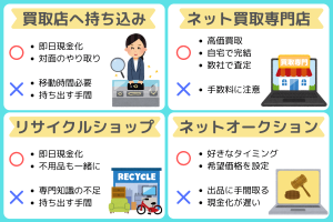 | 店舗買取と郵送買取のメリットとデメリット | ||