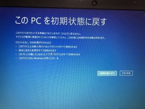 次に、初期化のタイプを選びます。全てのファイルを削除する「完全初期化」と、アプリや設定だけをリセットする「部分初期化」があります。それぞれの用途に応じて選びましょう。初期化が完了するまで、パソコンの電源を切らないように注意します。