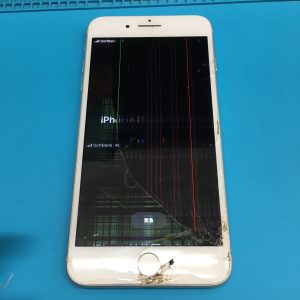 画面が割れてしまい、液晶にも破損が及んでいる、いわゆるジャンク品のiPhone 8Plusです。