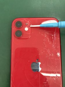 こちら見て分かる通りなのですが激しくiPhoneを落下させてしまいiPhoneの背面のガラスが割れてしまっている状態ですね。