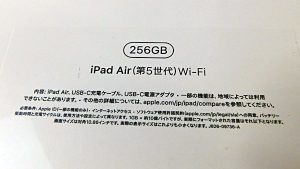 こちらも写真ではわかりにくいのですが、一番外側の薄いラッピングフィルムが貼られておりこちらも新品未開封のiPadAir5となります。
